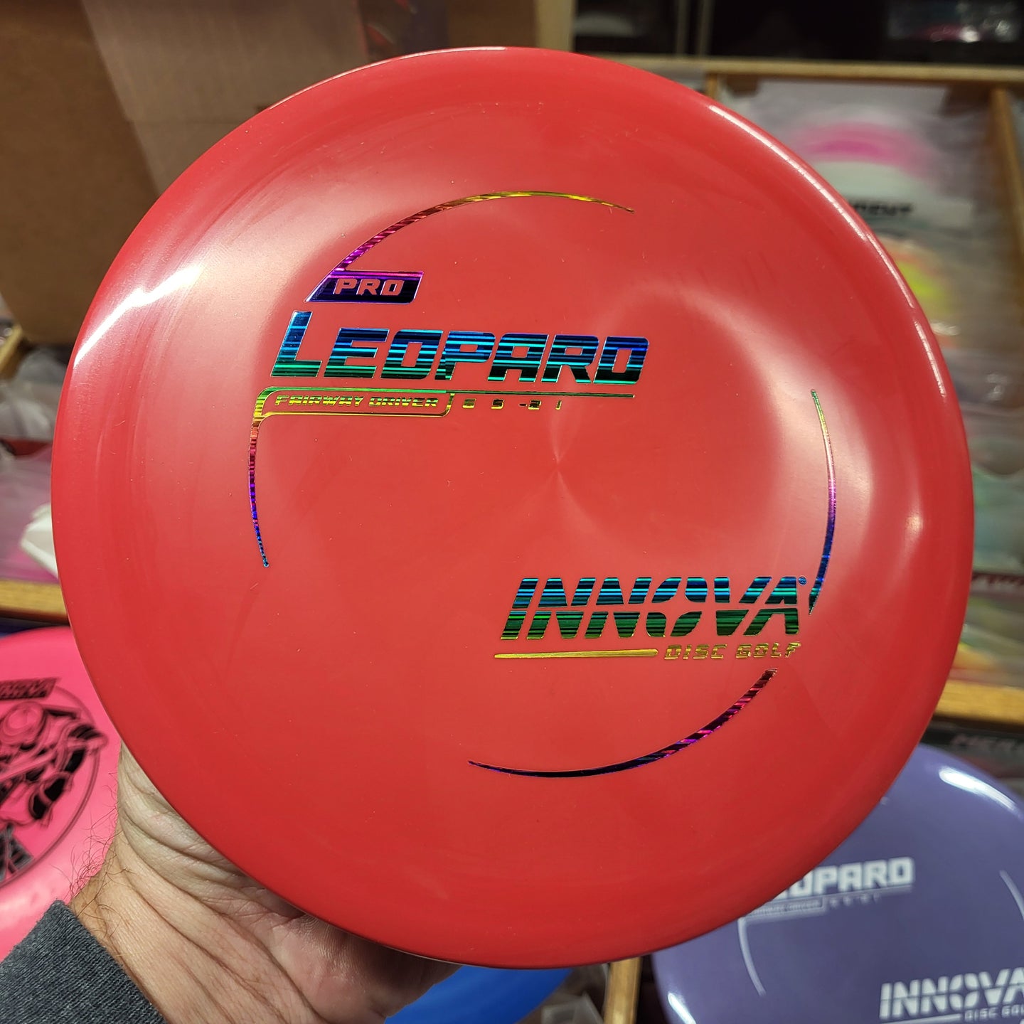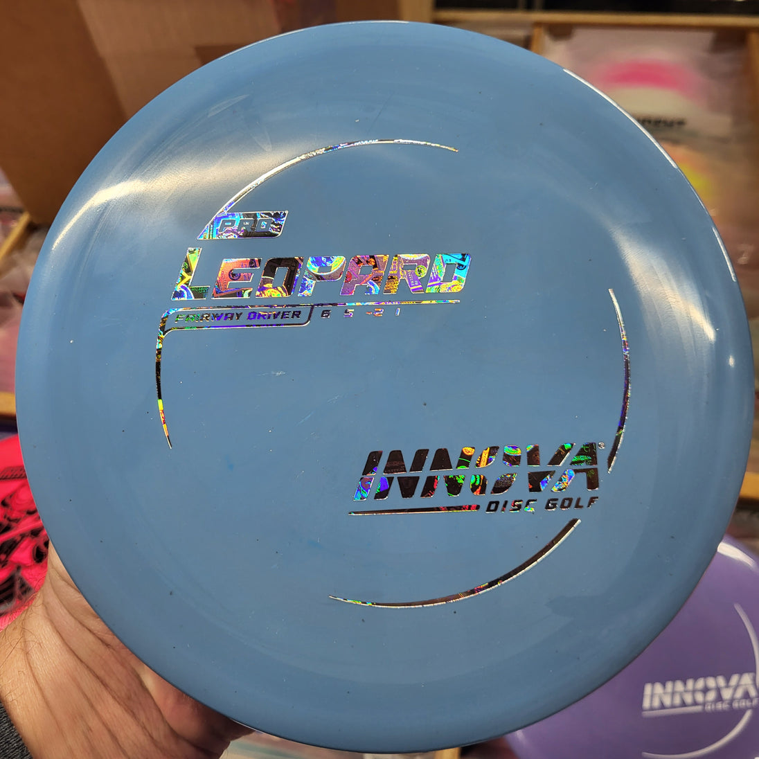 The Leopard is a great turnover disc for players of all skill levels. More experienced players can use the Leopard for throwing distance stretching “Hyzer Flip” shots. The Leopard makes a dependable long range roller.