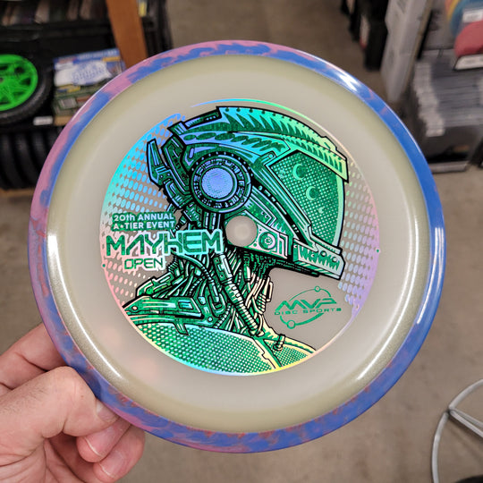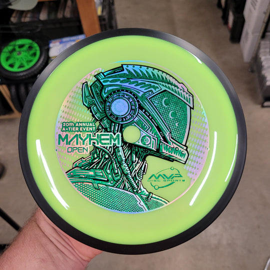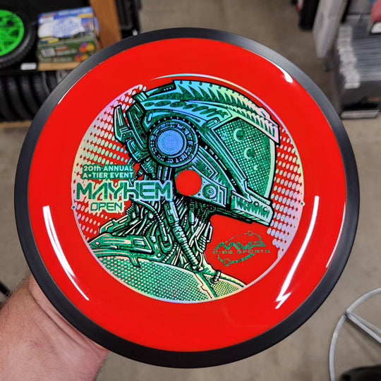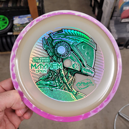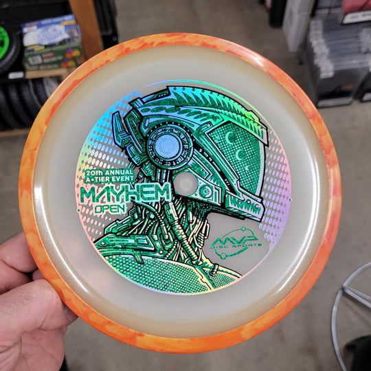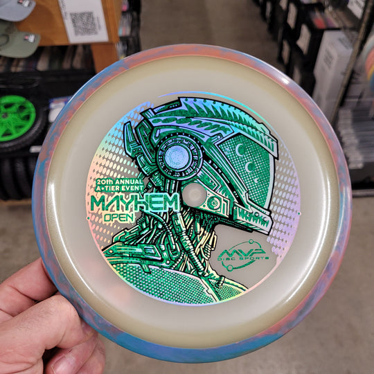 1 reviewNew Eclipse INSANITY for the Mayhem Open Fundraiser Disc. This artwork is a collaboration between Les White and Skeet Scienski. Comes with Certificate of Authenticity COA Card. *normal factory storage wear. #SkeetDesigns #LSWT 9 / 5...Sale price $22.99Regular price $24.99Sale price $22.99Regular price $24.99 -